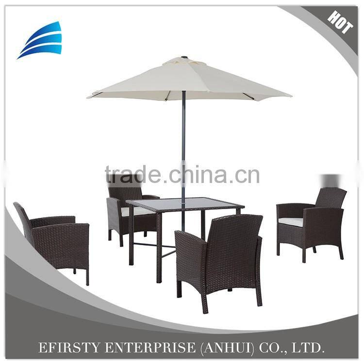 ---6 piece rattan wicker outdoor furniture set includes 1 table, 4 chairs and 1 patio umbrella