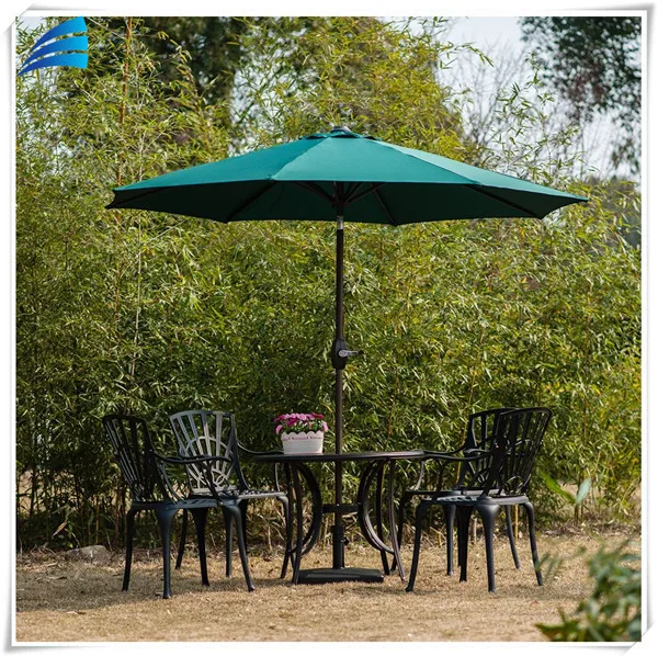 UV Resistant Treated Polyester Fabric, Waterproof,fade Resistant Patio Dark Green Garden Line Umbrella