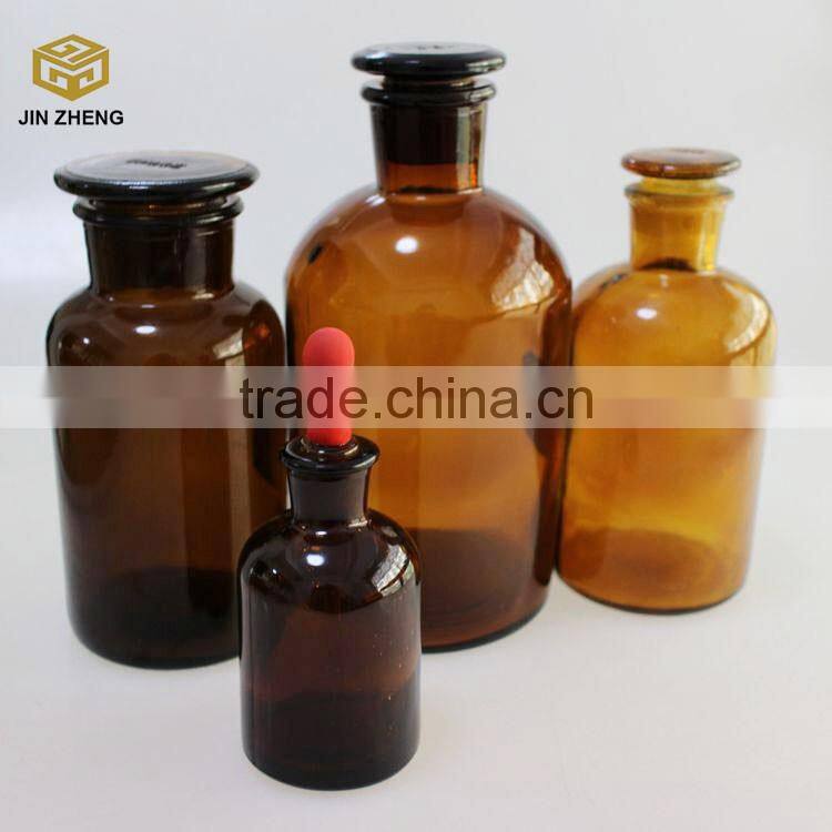 Amber Reagent Chemical Storage Bottle Glass Laboratory Reagent Bottle With Ground-in Narrow Wide Mouth