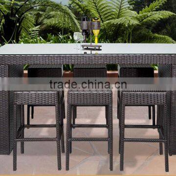 2017 Trade Assurance Promotion Outdoor Poly Rattan Woven Wicker Handmade Bar Stool Table Set Furniture