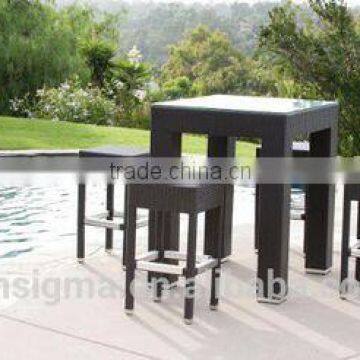 2017 Trade Assurance Best Price Outdoor Synthetic Rattan Metal Unique Bar Table Set Furniture