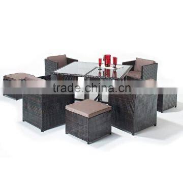 PE rattan, UV resistance, waterproof 1.2mm aluminum frame High density sponge of cushion Color is available 1)Green product, UV-resistant, weatherproof and color available 2)Excellent hand weaving technique with fashion design; 3)Perfect for casual dining and entertaining inside and outside; 4)Great quality with competitive price and timely delivery |
