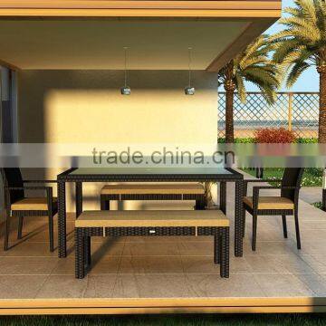 PE rattan, UV resistance, waterproof 1.2mm aluminum frame High density sponge of cushion Color is available 1)Green product, UV-resistant, weatherproof and color available 2)Excellent hand weaving technique with fashion design; 3)Perfect for casual dining and entertaining inside and outside; 4)Great quality with competitive price and timely delivery |