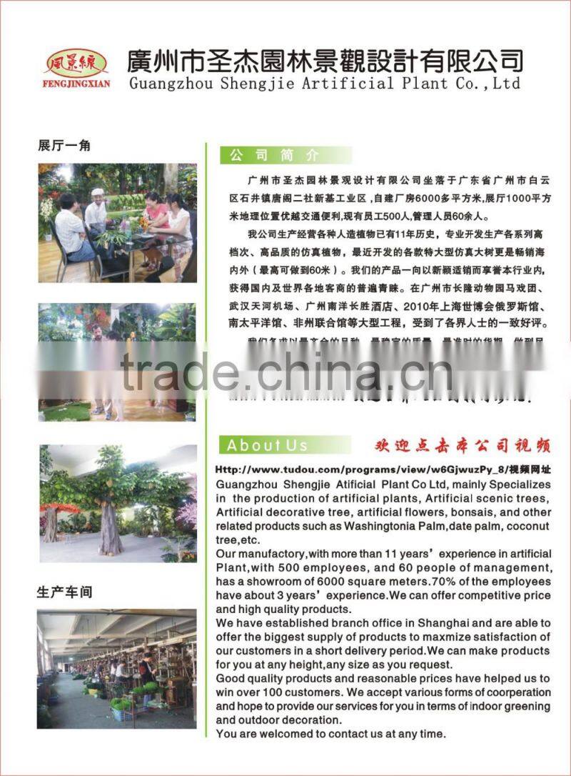 Guangzhou Shengjie Artificial Co,Ltd is one of the best professional supplier of artificial flowers, plants, trees topiaries Our company concentrate development, design, manufacturing, marketing services together specialized in production Artificial Coconut Tree, Artificial Palm Tree, Artificial Date Palm Tree, Artificial Banyan Tree, Artificial Ficus Tree, Artificial Maple Tree, Artificial Pine Tree, Artificial Olive Tree, Artificial Fruit Tree, Artificial Cherry Blossom Tree, Artificial Flower Tree, and any kinds of artificial trees. We can provide all kinds of artificial plants for hotel, shopping mall, office building, public pleasure ground, theme water park, and artificial plant engineering and so on.