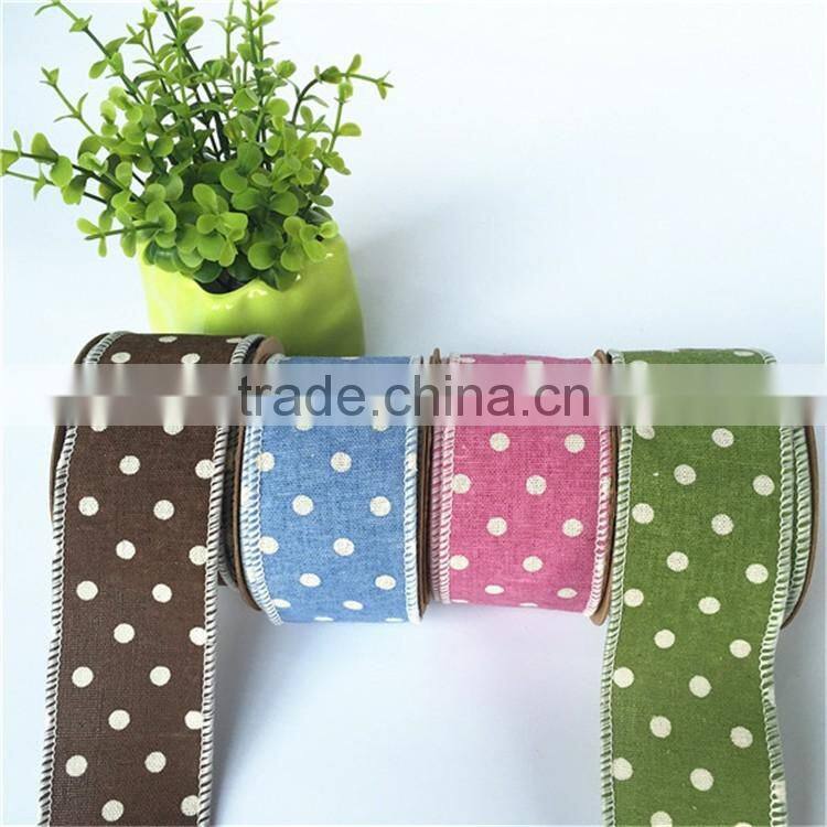 Wholesale Personalized Cotton Linen Dots Ribbon for Decoration