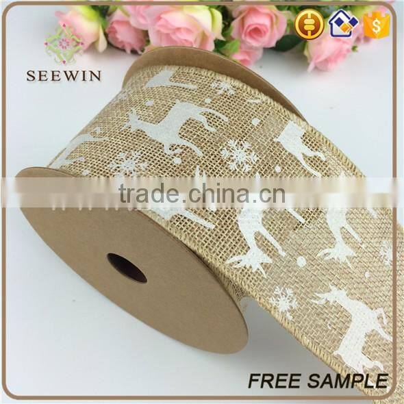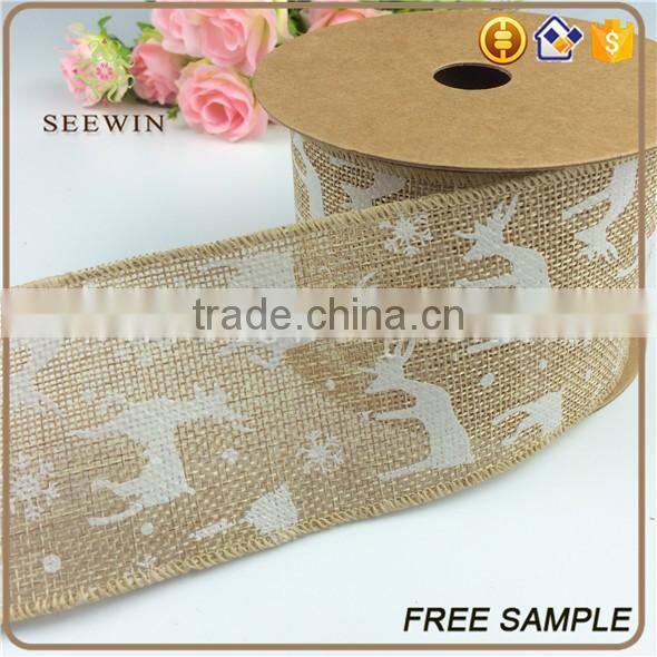 Cheap Wholesale Polyester organic Linen for Christmas Ribbon