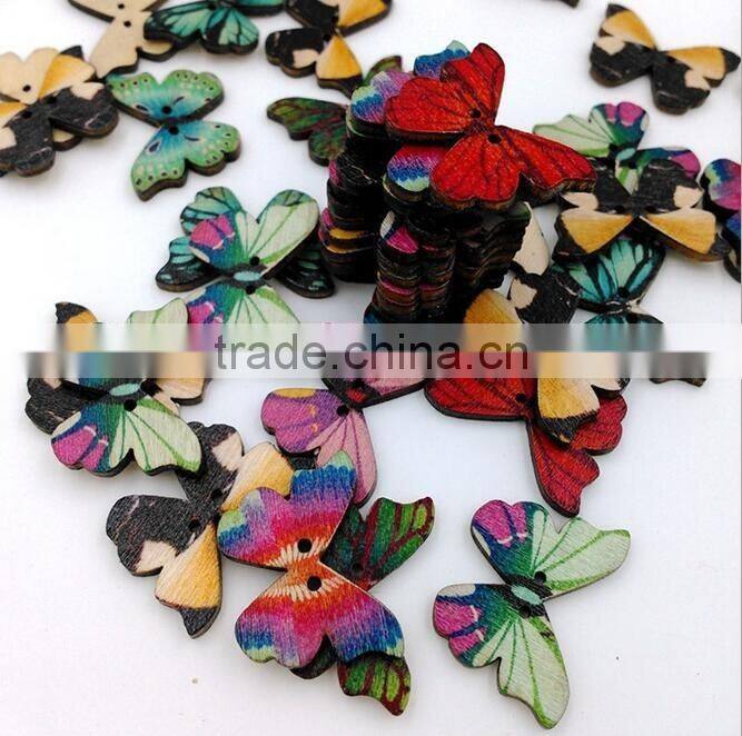 colorful butterfly natural wooden button