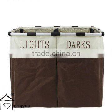 Oxford cloth double compartments basket foldable laundry hamper washable laundry basket