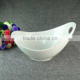 Pure White Unique Shape Ceramic Salad Bowl With Handle