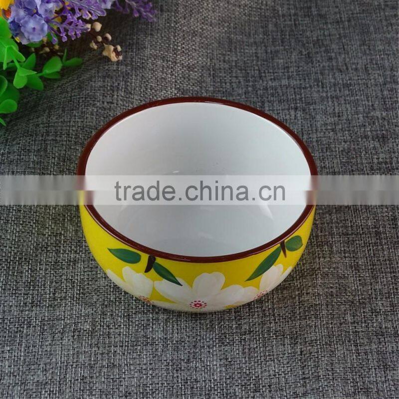Japanese Style Flower Yellow Ceramic Bowl Bulk Big Porcelain Bowls