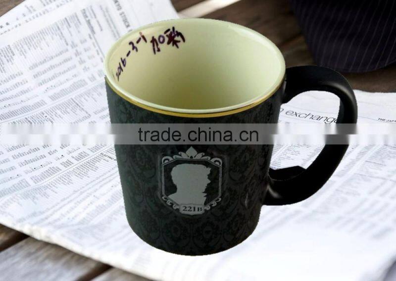 Stoneware Matt Black Color Ceramic Mug /embossed Logo Print /350 ml / 12 Oz Matte Black Coffee Mug