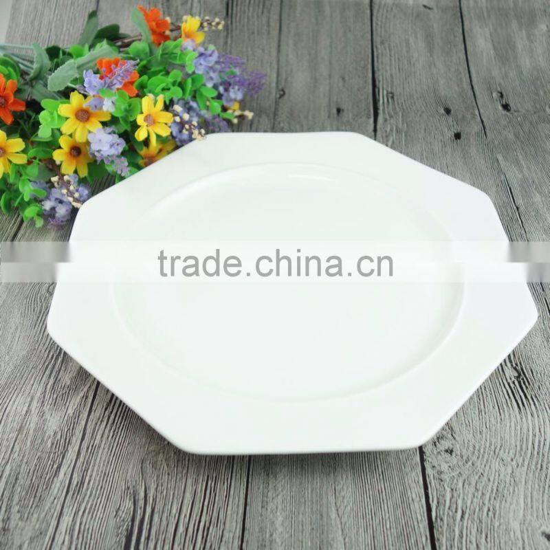 12 Inch Polygon White Porcelana Dinner Dishes Plates Low Pirce Ceramic Plate Restaurant