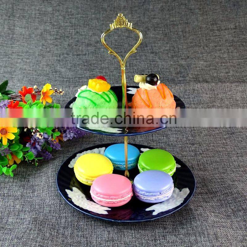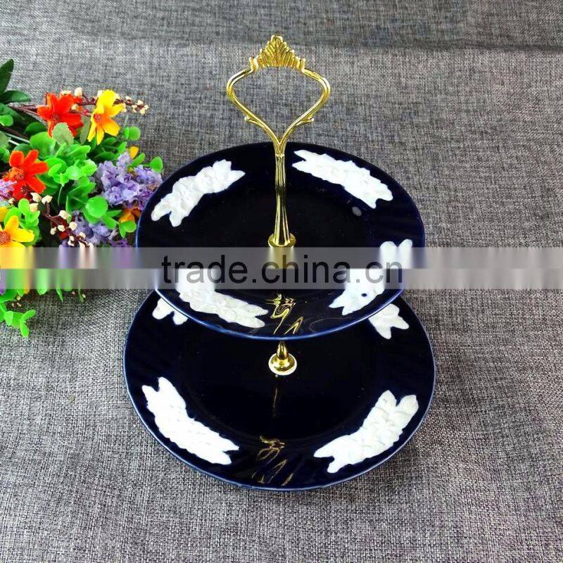 Dark Bule And Gold Support Bone China Porcelain Plate Stand Cake Docerating Tools