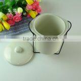 Wholesale White Ceramic Pots , White Ceramic Soup Tureen With Lid , Ceramic Stew Pot With Iron Stand