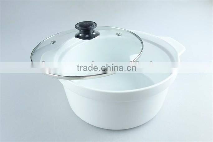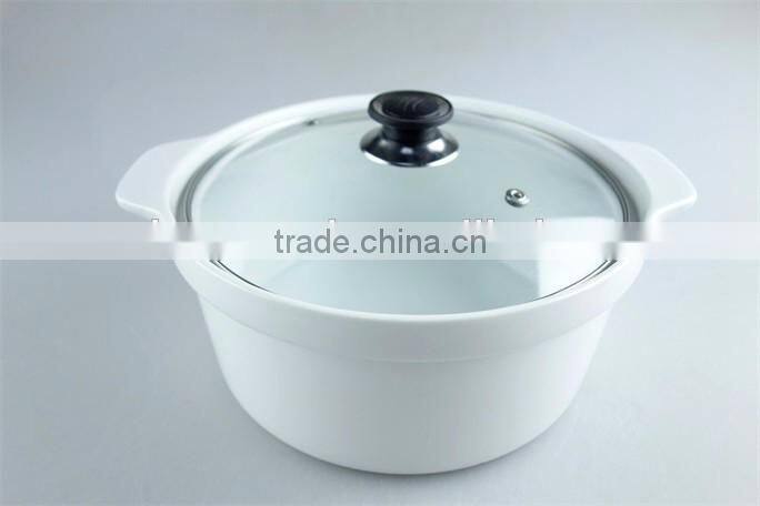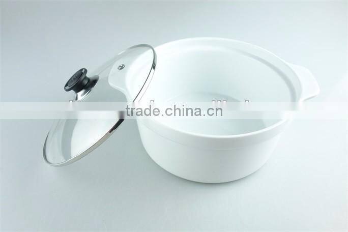 Great White Ceramic Cooking Pot With Two Handles, Porcelain Tureen With Glass Cover