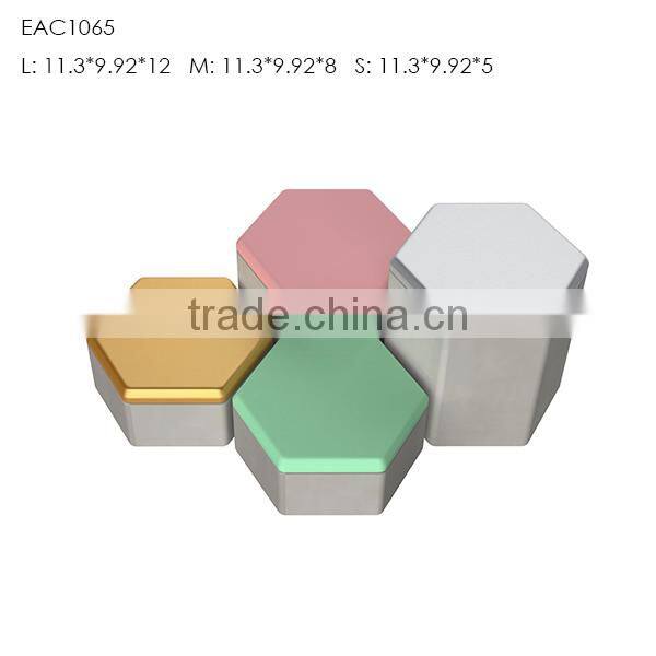 This nice salt pepper shaker set is made of special cement,concrete,beton,S,M,L different sizes series,hexagon shape with color sprayed lid,looks graceful.Smooth finish,or marble effect etc. all kinds of styles,good for candy ,snacks,the tiny or even kitchen spice,salt,pepper or else.