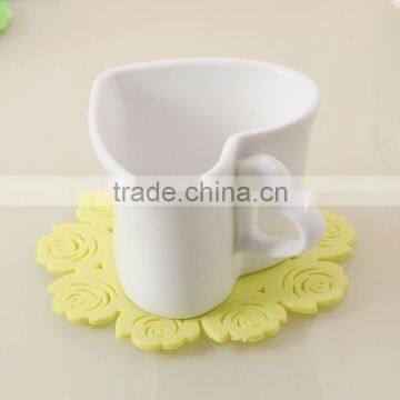 Supply Creative Fashion Pierced Rose Silicone Insulation Pad / Cup Mat --yellow