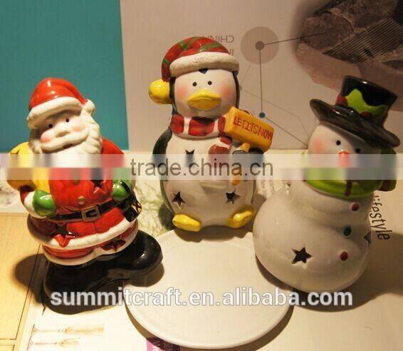 Ceramic 3d santa snowman decoration christmas candle holders