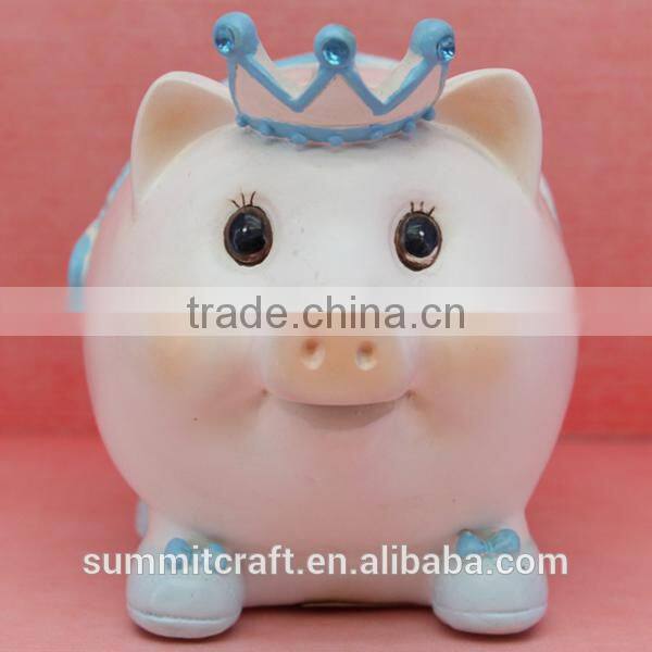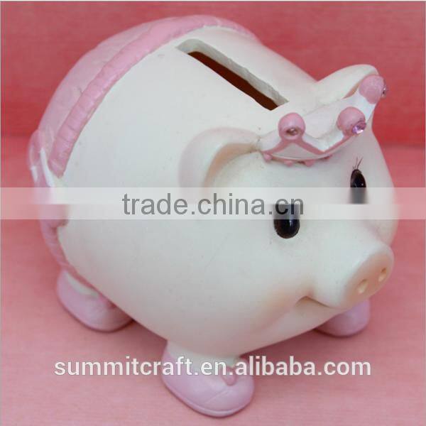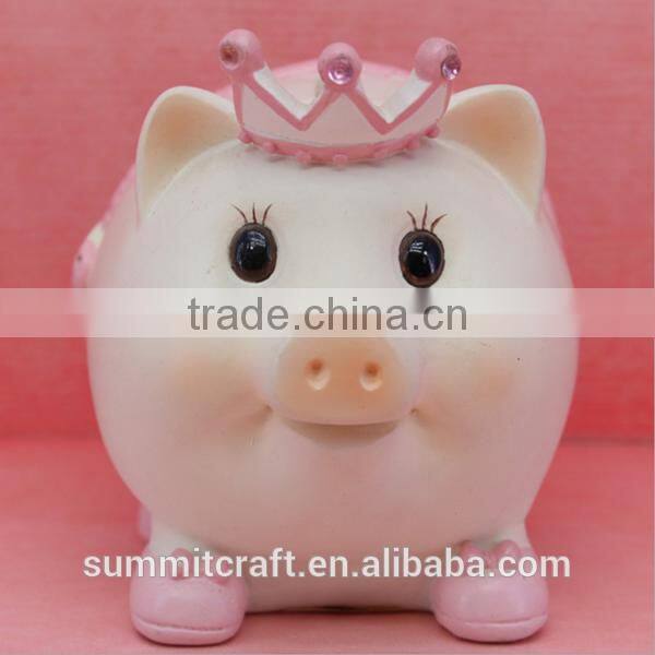 Resin Pink Pig Wearing Crown Piggy Bank Money Boxes Wholesale