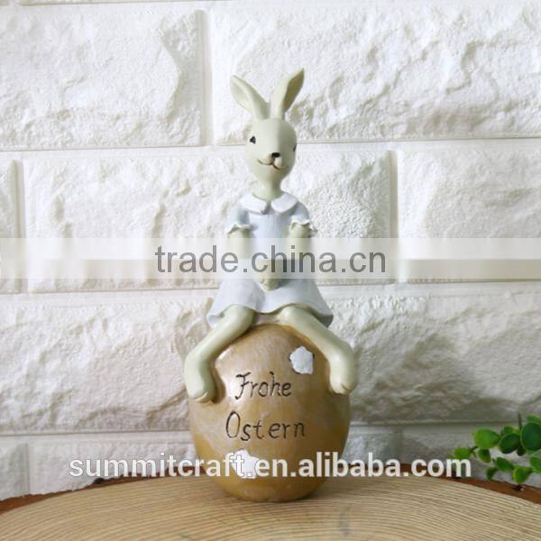 Resin Bunny Sitting on Egg Figurine Easter Decoration