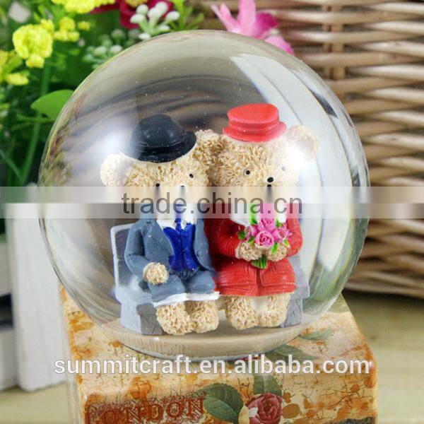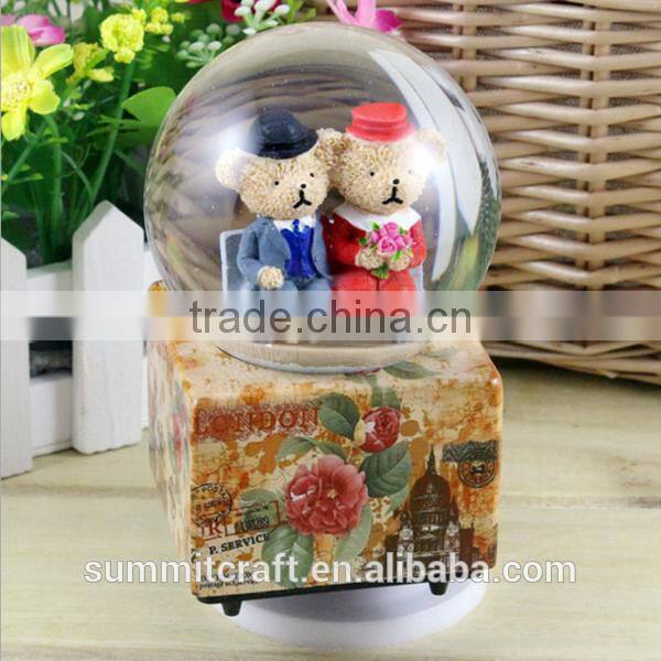 Resin Bear Couple Antique Musical Snow Globes With Blowing Snow