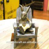 Plate Bronze Reading Antique Resin Rabbit Statues