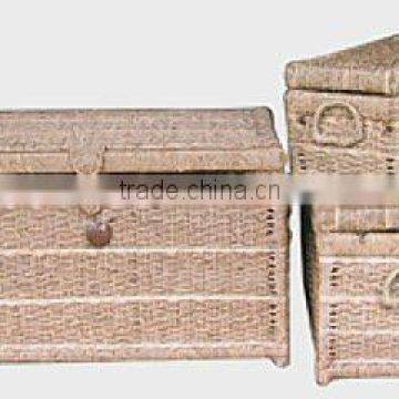 Trunk set of 3pcs, seagrass weaving, wood frame, liner insideDes. of goods : Trunk set of 3pcs nexted inside