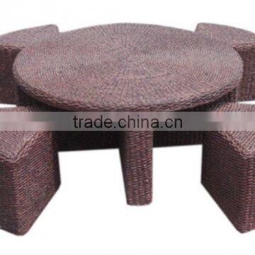 Round Table and Stool Set of 5pcs/water Hyacinth Stool and Table/wood Frame
