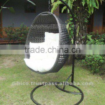 single wicker hanging Chair for outdoor furniture: Aluminum frame , Stand-frame : Steel, PE rattan weaving, cushion and pillowDes. of good : Hanging Egg Chair