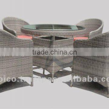 COFFEE SET OF 5PCS, AL. FRAME, WICKER 7MM WEAVING, CUSHION 5CM (FOAM 25Kg/m3, FABRIC 250 Gram/m2), T-GLASS 8MMDes. of good : Outdoor Furniture Rattan Dining Table Set of 5pcs( 04 Arm chair + 01 Table)