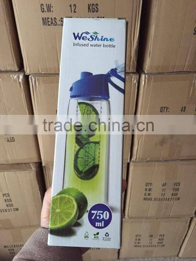 Private Label BPA Free Fruit Infusing Water Bottle w/ Ice Sphere