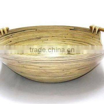 High Quality Best Selling Eco Friendly Spun Bamboo Fruit Round Large Bowl With Rattan Handle