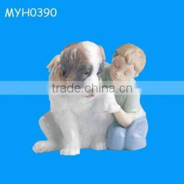 new dog and boy, porcelain dog, decors crafts