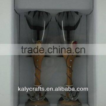 2013 new decorated cowboy resin wedding glass