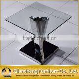 - Hot Sale Glass Square End Table With Shiny Stainless Steel Frame