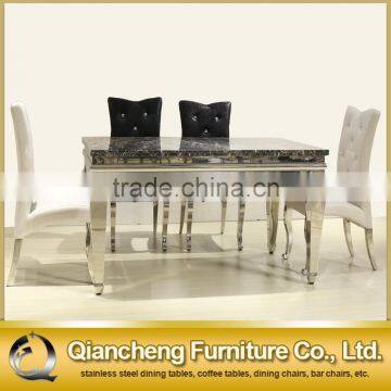 Marble top table with stainless steel frame for dining room