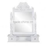 Jeweled Makeup Mirror White Color Fancy Women Makeup Dresser Drawer Wooden Rotating Fancy Mirror