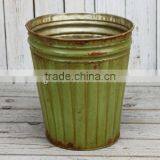 Green Painted Oriental Rustic Style Carved Garden Decorative Antique Buckets/Small Decorative Flower Pots/Tin Flower Container