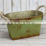 Antique/rustic/ Shabby Chic Oval Shape Iron Planter With Linen Handle