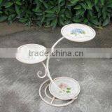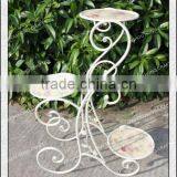 H70cm Wholesale Folding Outdoor French Design White Rose Flower Stand/wrought Iron Plant Stand/3 Tier Metal Flower Pot Stand