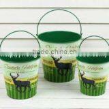 Garden Decorative Green Round Animal Powder Coated Metal Bucket With Lid