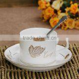 Leaf Design Coffee Tea Porcelain Ceramic Cups Saucers Set