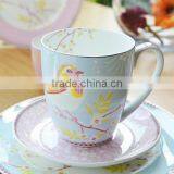 Bird Porcelain Ceramic Coffee Cups Saucers and Flat Plate