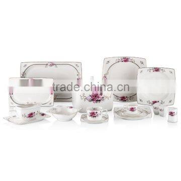 Fine Porcelain 85pcs Dinner Set Sqaure Shape 121pcs Dinnerware With Flower Design
