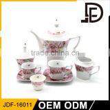 2017 Promotion Item Porcelain Turkish Tea Pot Set With Flower Design