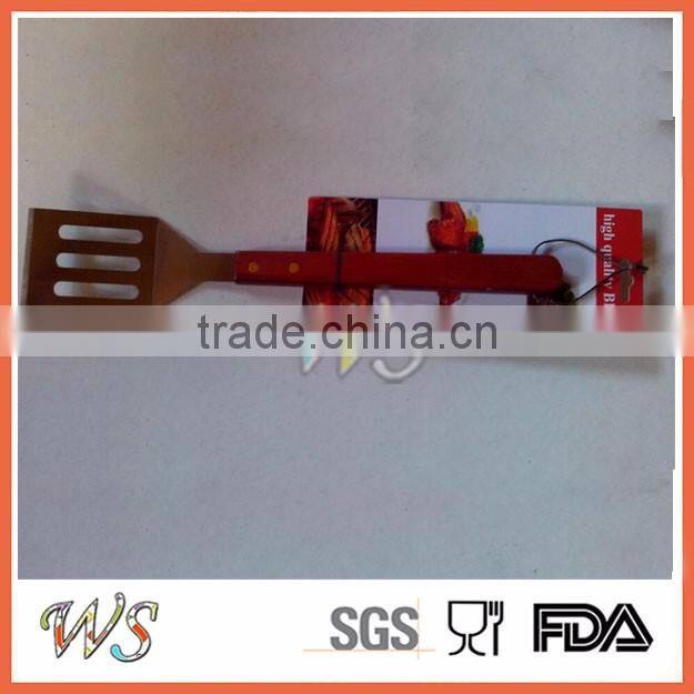 BBQ Stainless Steel Spatula Wood Spatula With Wood Handle With 3 Long Elliptical Holes