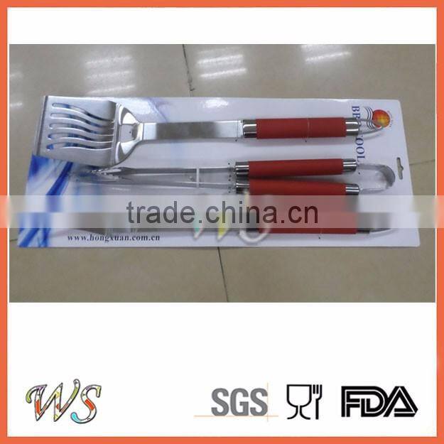 WSSKHL090 Stainless Steel Bbq Tools Set 3pcs With Bamboo or Pine Oak Wood Handle