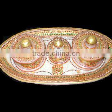 Hand made decorative marble drry fruits boxes with serving tray