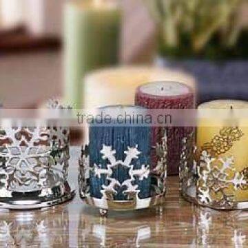Beautifuly brass metal crafted christmas pillar holders in silver finish