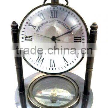 NAUTICAL STYLE DESK CLOCK WITH COMPASS
